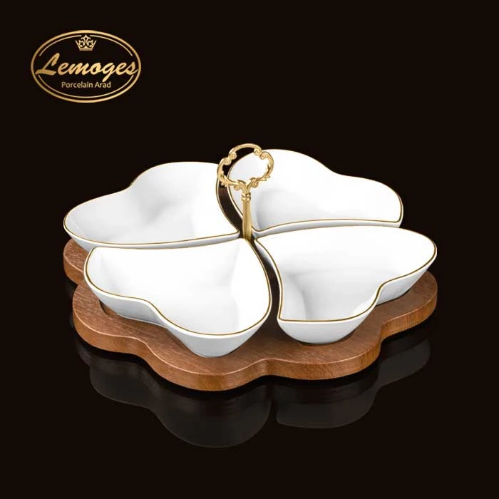 اردوخوری بیضی موج سه خانه فریم چوب خط طلا